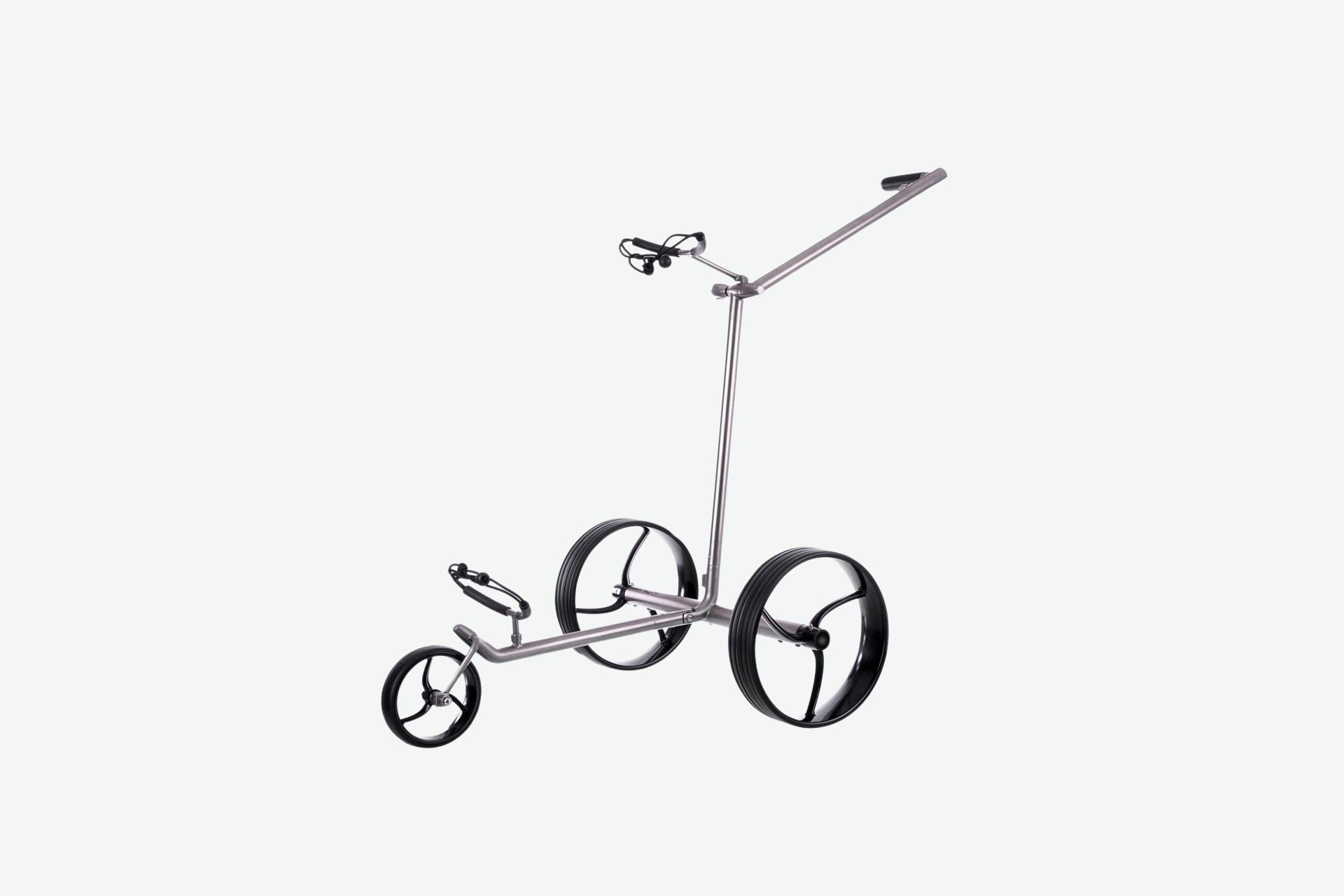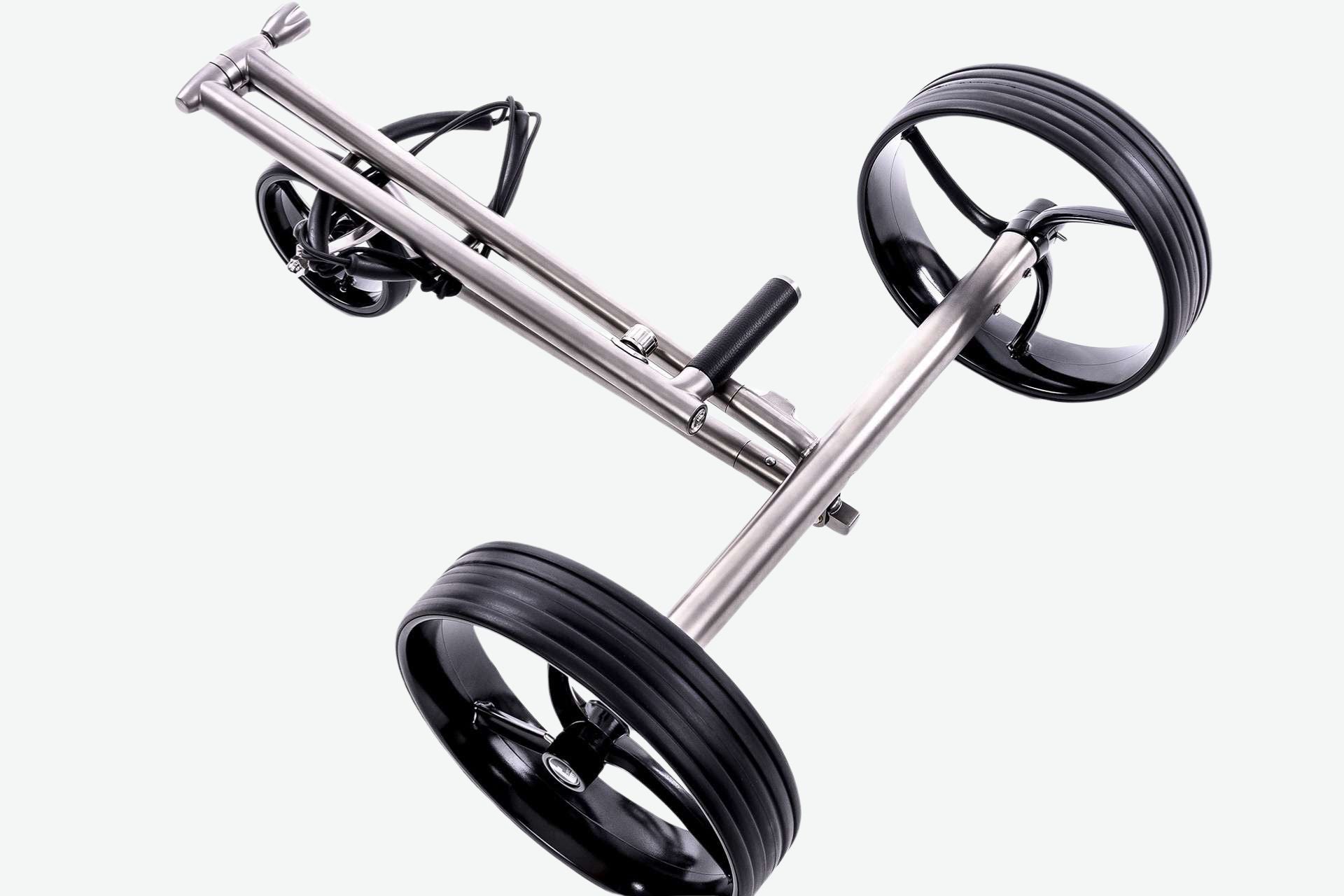 The titanium material makes the golf trolley lightweight. The brushed surface gives the trolley a very elegant appearance.