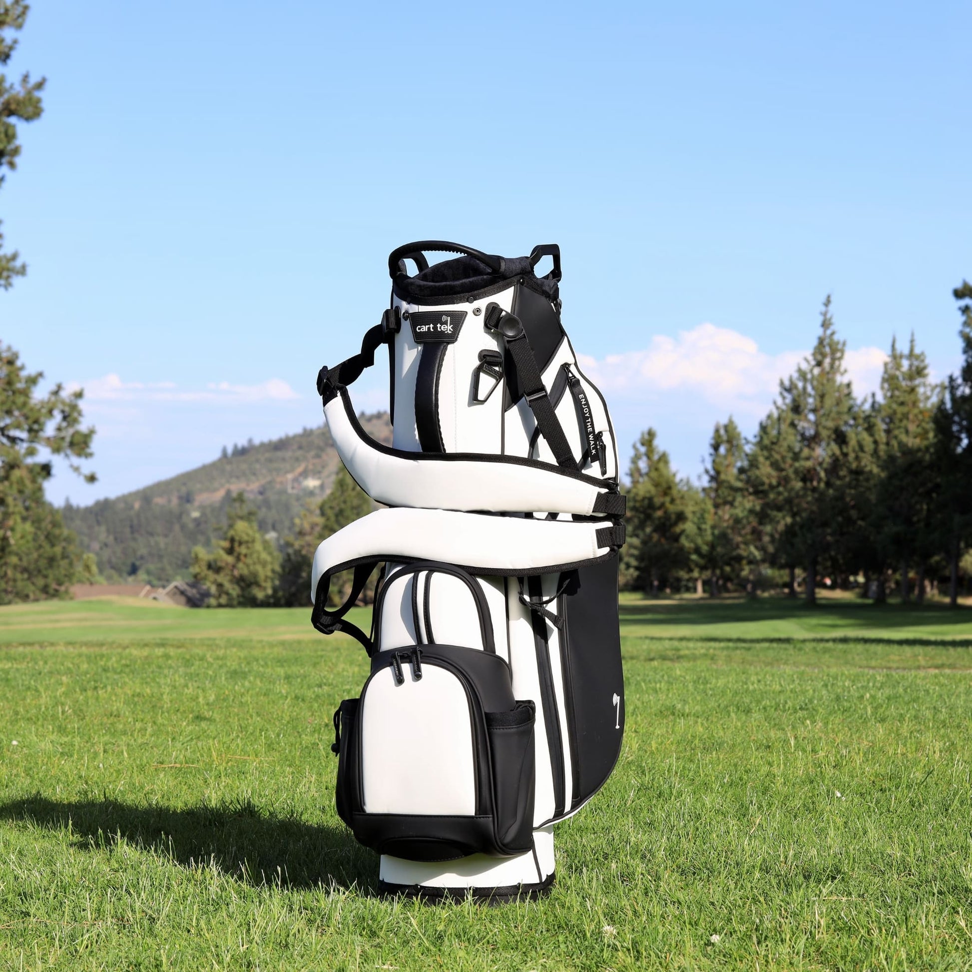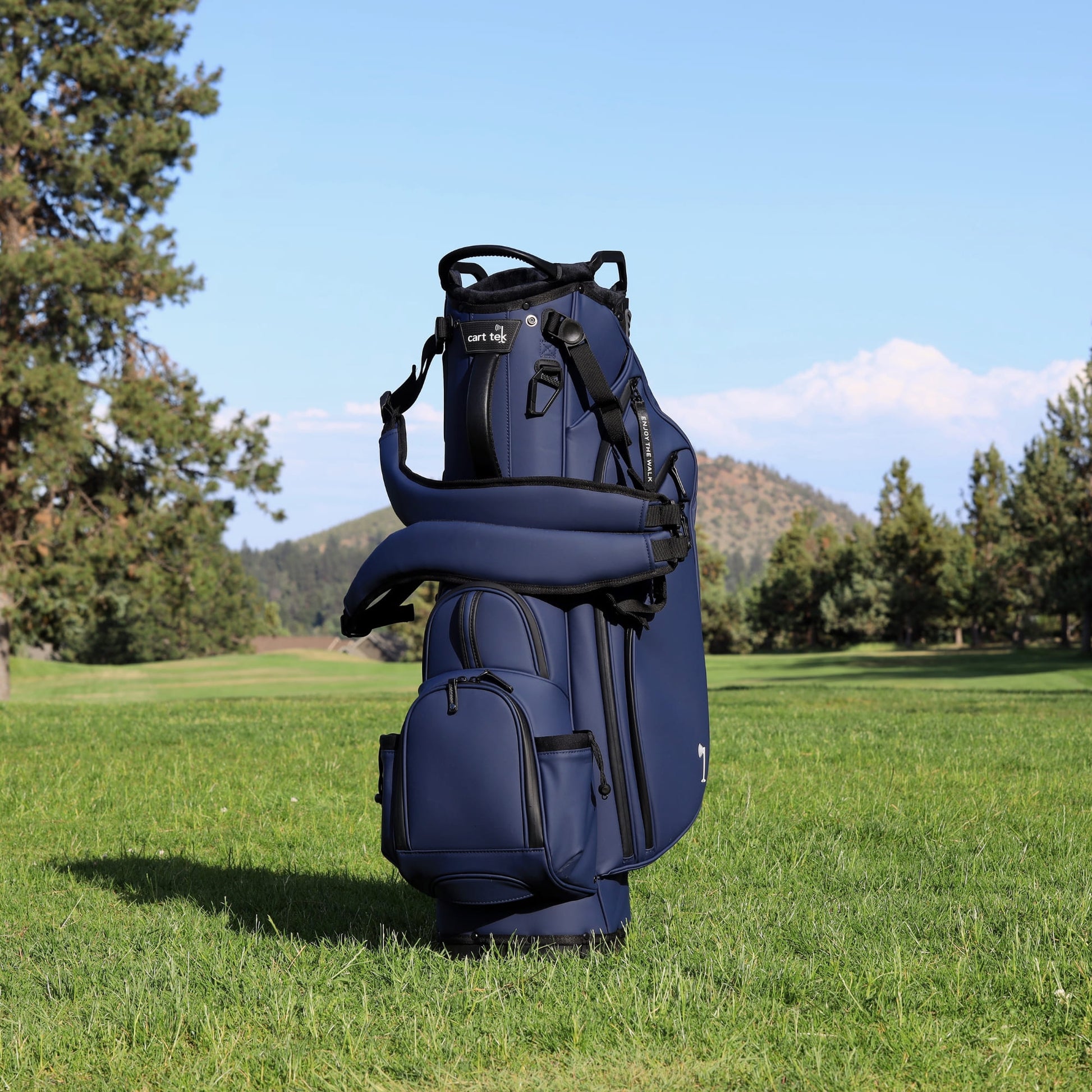 We've reinforced the upper bag rest interface, as well as lowered the stand bag mounting points for a prefect fit to your cart.